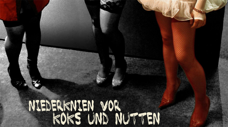 NIEDERKNIEN VOR KOKS UND NUTTEN ist ein Abend, der sich diesem Drang widmet.