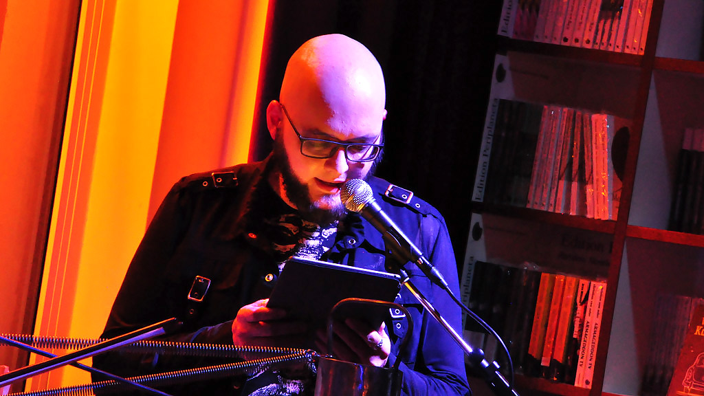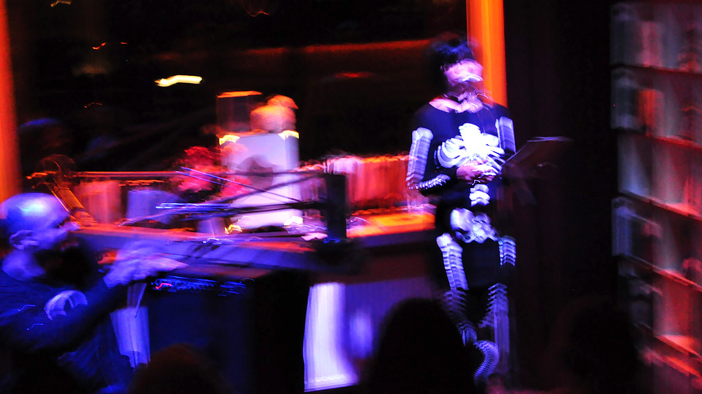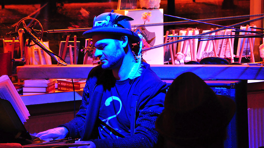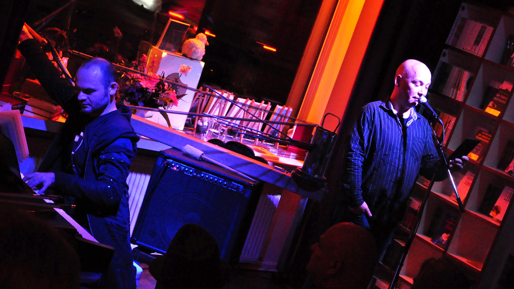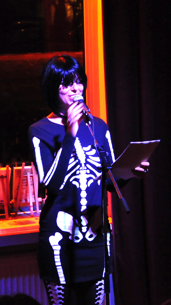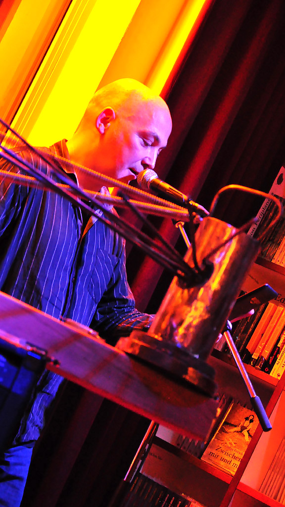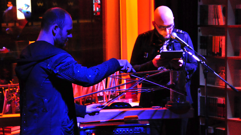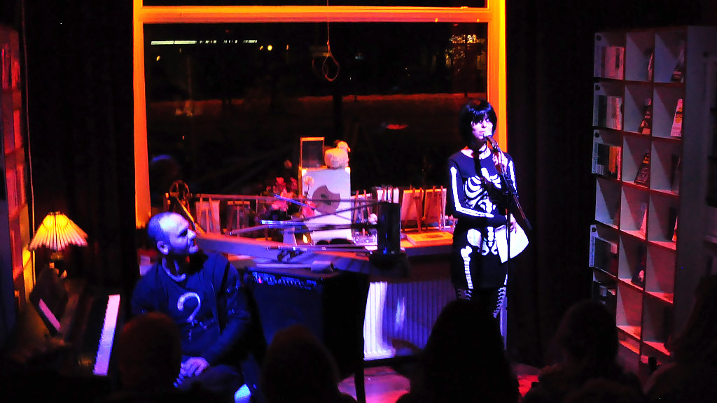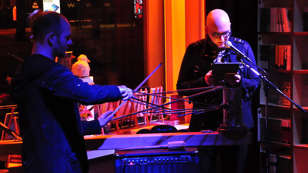Es gab Süßes und Saures, Gruseliges und Lustiges, Absurdes und Psychothrilliges am 31. Oktober 2018 bei uns. Im mehr als vollen Café präsentierten Thomas Manegold, Sascha Dinse und Sarah Strehle Gedichte, Lovecraft und Schauergeschichten. Quietschende-fiepsende-die-Haare-zu-Berge-stehen-lassende Sounds entlockte Caspar Pan seinem eigens gebauten Instrument „Expanderella“. Ein grandioser Abend. Und weil es so grandios war, kann man das gar nicht in schaurig-schöne Worte kleiden. Also gibts hier den visuellen Rückblick: