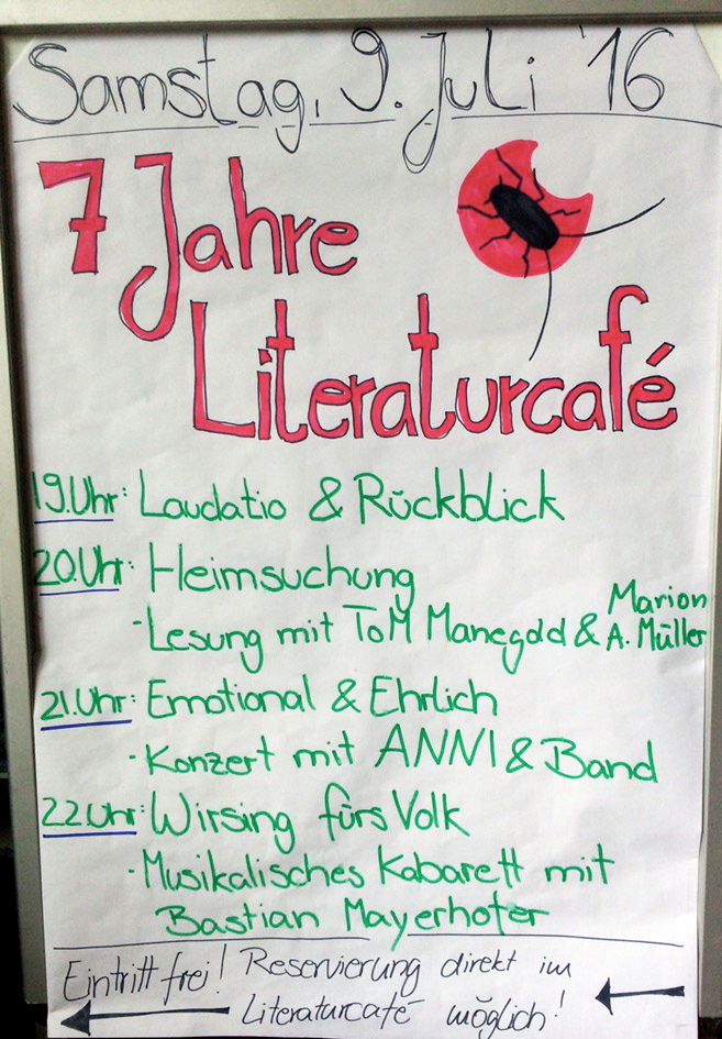 Im Literaturcafé des Periplaneta Verlags kannst Du Dich einen ganzen Tag lang ungezwungen vergnügen, die Augen schließen, chillen und unseren Darbietungen lauschen, Dich bei einem Kalt- oder Heißgetränk durch das Sortiment blättern – oder sogar mitmachen. Ab 14 Uhr stehen Marry, Sarah und ToM Rede und Antwort. Und zu jeder vollen Stunde gibt es Vorträge und Lesungen: